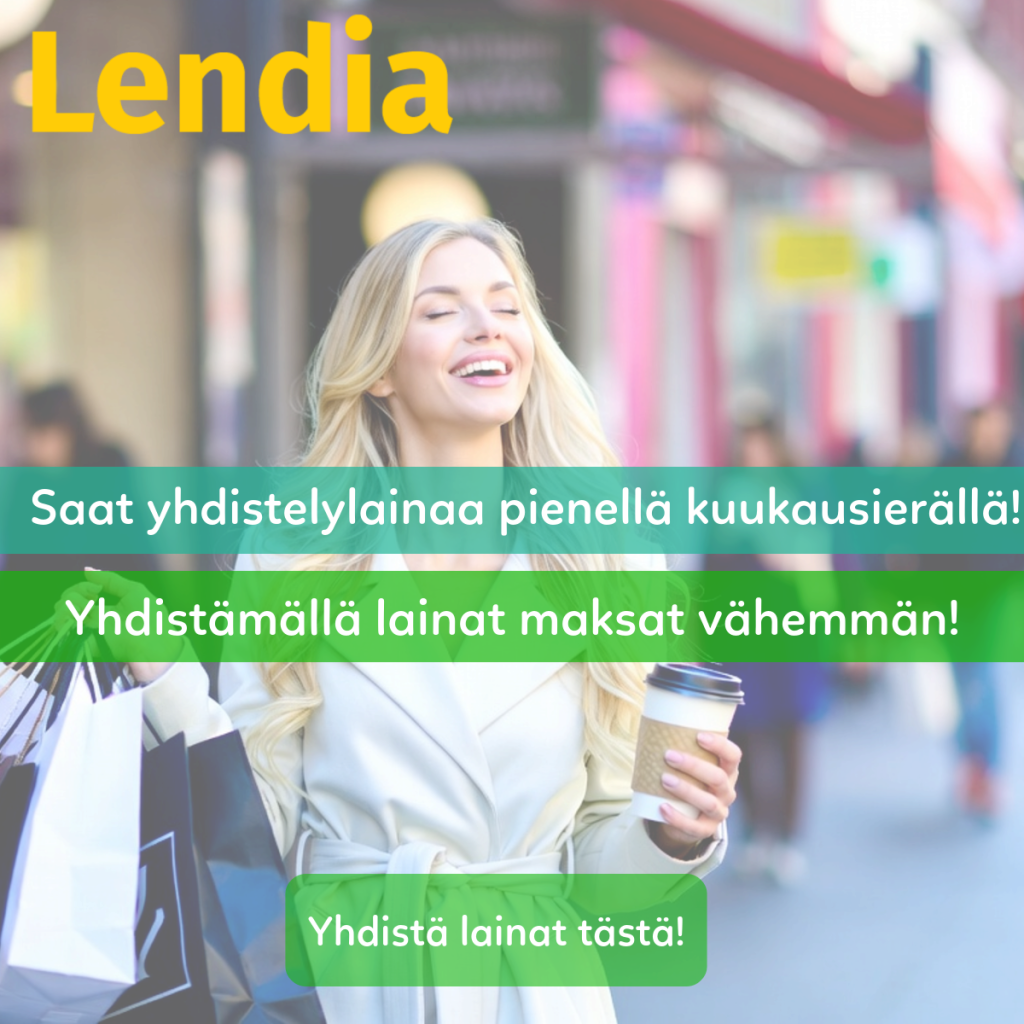 Lendia on kotimainen lainojen yhdistämispalvelu jonka kautta tuhannet tyytyväiset asiakkaat ovat saaneet 20.000€ – 70.000€ kokoisia lainoja ja yhdistelylainoja!